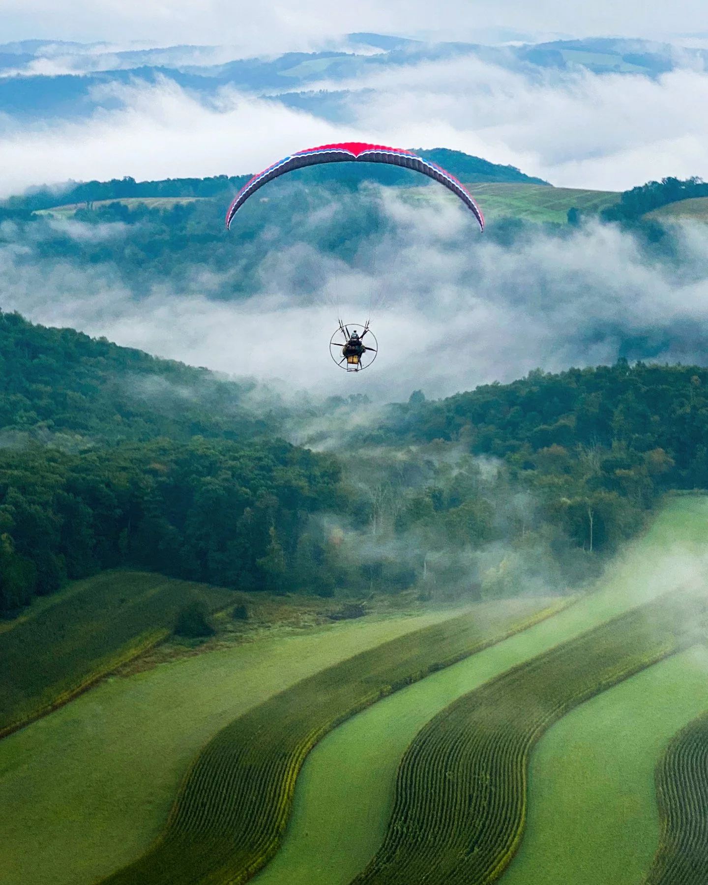 You might find yourself flying miles high, shutting off the motor, and sipping coffee while you drift slowly with the sunrise. Or you might prefer carving low through foggy valleys, foot-dragging ponds, and tasting the thrill of three-dimensional flight like a fighter jet. Maybe it’s simply floating peacefully over the treetops, like a bird, from the comfort of your “air chair.”